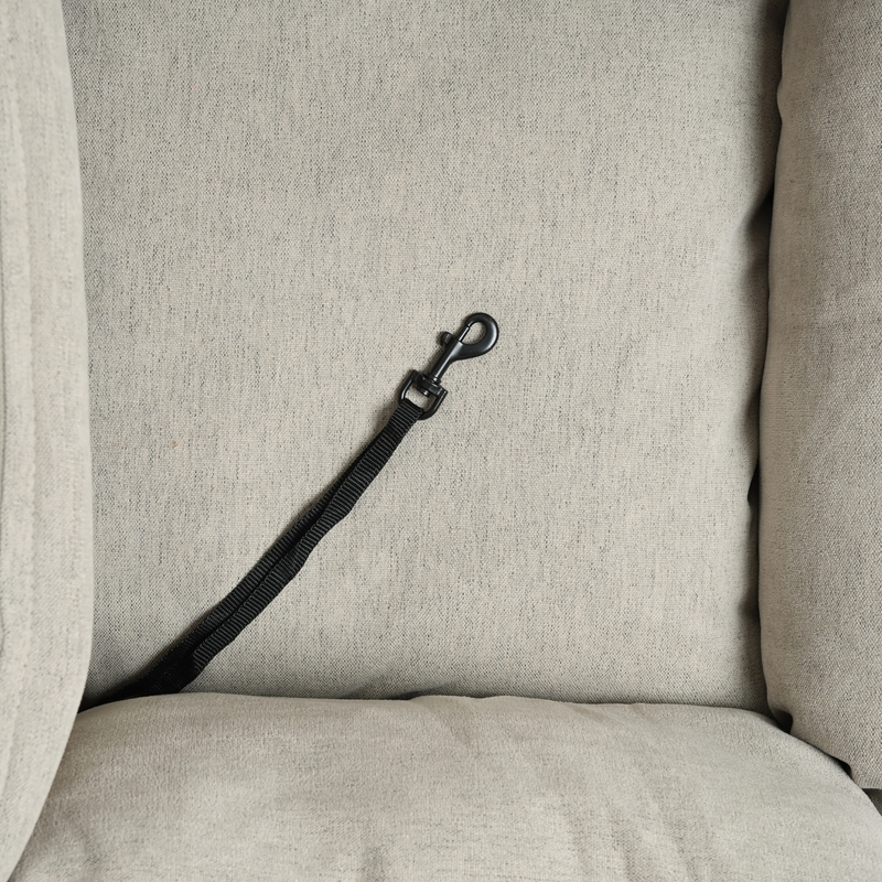 Fenja on varustettu sisäänrakennetuilla karabiinikiinnikkeillä, joiden avulla voit kiinnittää koirasi valjaat turvallisesti suoraan istuimeen. Kahdella klipsillä voit joko:
