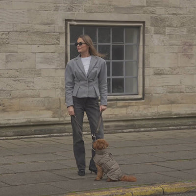 Jakken er lavet af virkelig lækkert materiale, både udvendigt og i polstringen. Den føles behagelig og varm, men pasformen er lidt for løs og ret lige – nærmest som et tæppe, der bare er lagt over hunden, uden at sidde tæt. Vi har derfor valgt at ombytte den til en fra Cloud7.